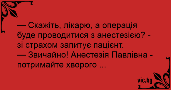 — Звичайно! Анестезія Павлівна - потримайте хворого ...