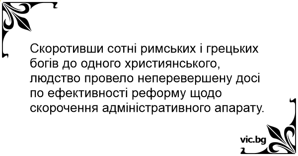 Скоротивши сотні римських і грецьких богів до одного християнського, людство провело неперевершену досі по ефективності реформу щодо скорочення адміністративного апарату.