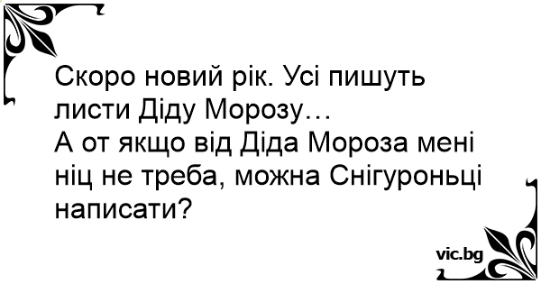 А от якщо від Діда Мороза мені ніц не треба, можна Снігуроньці написати?