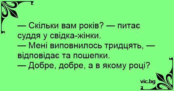 — Скільки вам років? — питає суддя у свідка-жінки.