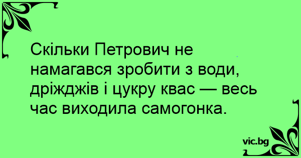 Скільки Петрович не намагався зробити з води, дріжджів і цукру квас — весь час виходила самогонка.