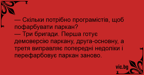 — Скільки потрібно програмістів, щоб пофарбувати паркан?