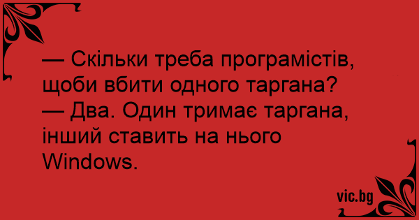 — Два. Один тримає таргана, інший ставить на нього Wіndоws.