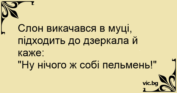 Слон викачався в муці, підходить до дзеркала й каже: