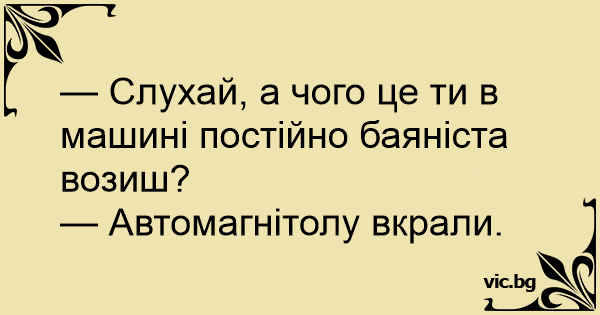 — Слухай, а чого це ти в машині постійно баяніста возиш?