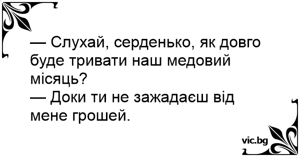 — Слухай, серденько, як довго буде тривати наш медовий місяць?