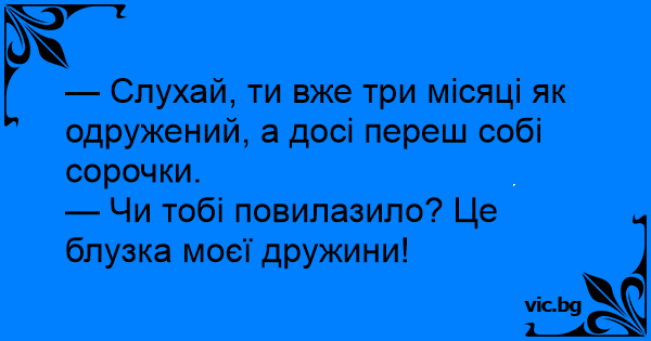 — Слухай, ти вже три місяці як одружений, а досі переш собі сорочки.