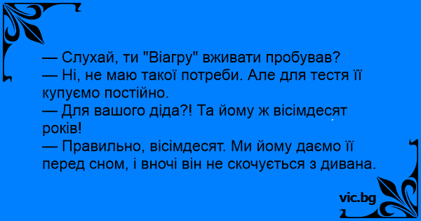 — Слухай, ти "Віагру" вживати пробував?