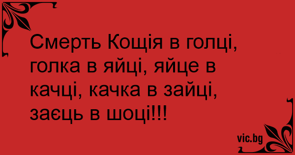 Смерть Кощія в голці, голка в яйці, яйце в качці, качка в зайці, заєць в шоці!!!
