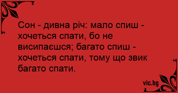 Сон - дивна річ: мало спиш - хочеться спати, бо не висипаєшся; багато спиш - хочеться спати, тому що звик багато спати.