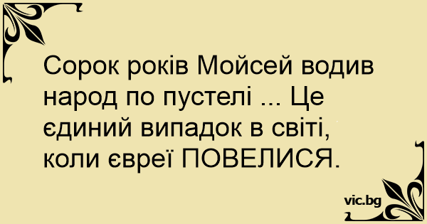 Сорок років Мойсей водив народ по пустелі ... Це єдиний випадок в світі, коли євреї ПОВЕЛИСЯ. 0 0 0 Жарти про євреїв