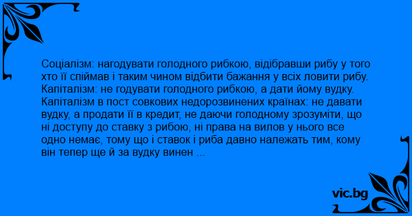 Соціалізм: нагодувати голодного рибкою, відібравши рибу у того хто її спіймав і таким чином відбити бажання у всіх ловити рибу.