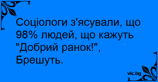 Соціологи з'ясували, що 98% людей, що кажуть "Добрий ранок!", Брешуть.