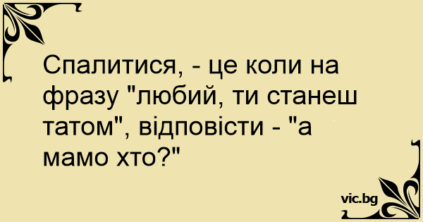 Спалитися, - це коли на фразу "любий, ти станеш татом", відповісти - "а мамо хто?"