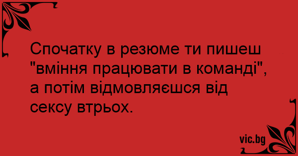 Спочатку в резюме ти пишеш "вміння працювати в команді", а потім відмовляєшся від сексу втрьох.