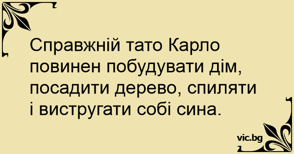 Справжній тато Карло повинен побудувати дім, посадити дерево, спиляти і вистругати собі сина.