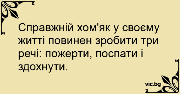 Справжній хом'як у своєму житті повинен зробити три речі: пожерти, поспати і здохнути.