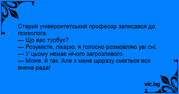 — Розумієте, лікарю, я голосно розмовляю уві сні.