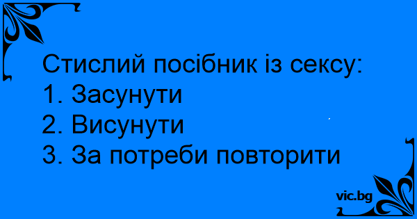 Короткий посібник з сексу: "Засунути. Витягнути. При необхідності повторити".