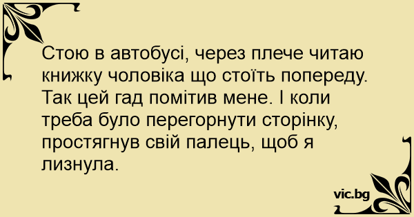 Стою в автобусі, через плече читаю книжку чоловіка що стоїть попереду.