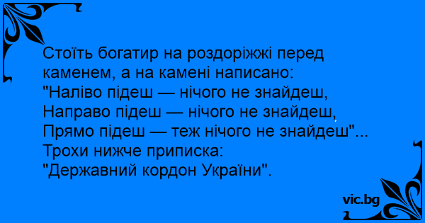 "Наліво підеш — нічого не знайдеш, Направо підеш — нічого не знайдеш, Прямо підеш — теж нічого не знайдеш"...