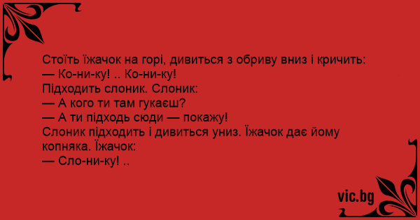 Стоїть їжачок на горі, дивиться з обриву вниз і кричить: