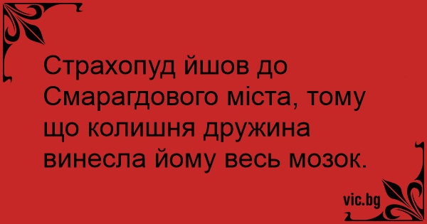 Страхопуд йшов до Смарагдового міста, тому що колишня дружина винесла йому весь мозок.