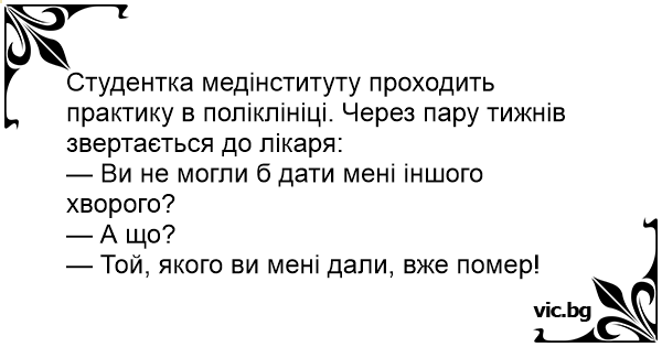Студентка медінституту проходить практику в поліклініці. Через пару тижнів звертається до лікаря: