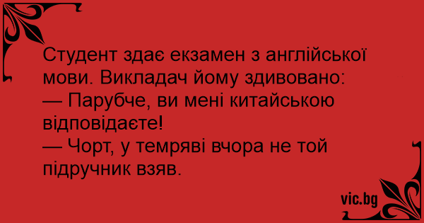 Студент здає екзамен з англійської мови. Викладач йому здивовано: