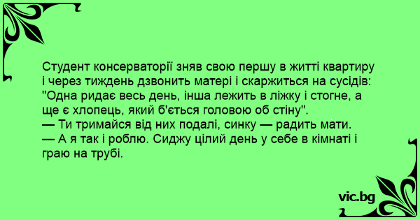 — А я так і роблю. Сиджу цілий день у себе в кімнаті і граю на трубі.