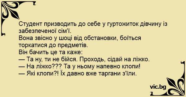 — Та ну, ти не бійся. Проходь, сідай на ліжко.