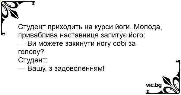 Студент приходить на курси йоги. Молода, приваблива наставниця запитує його: