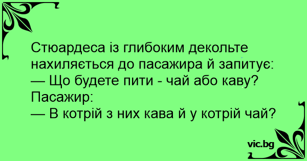 Стюардеса із глибоким декольте нахиляється до пасажира й запитує: