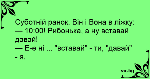 — Е-е ні ... "вставай" - ти, "давай" - я.