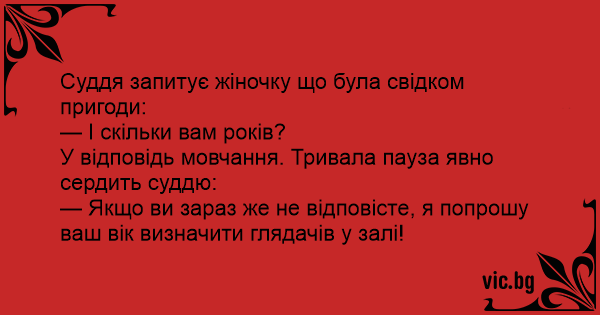— Якщо ви зараз же не відповісте, я попрошу ваш вік визначити глядачів у залі!