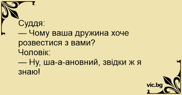 Суддя: — Чому ваша дружина...