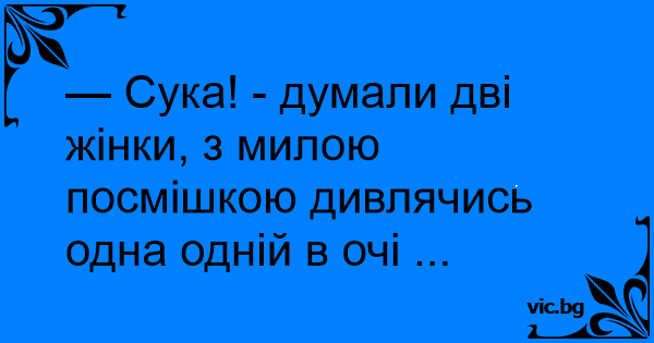 — Cуka! - думали дві жінки, з милою посмішкою дивлячись одна одній в очі ...