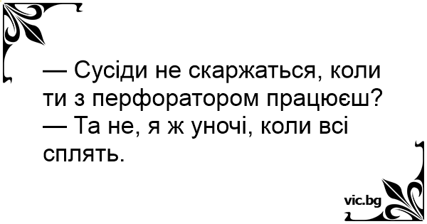 — Сусіди не скаржаться, коли ти з перфоратором працюєш?