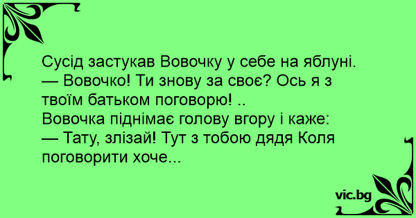 — Вовочко! Ти знову за своє? Ось я з твоїм батьком поговорю! ..