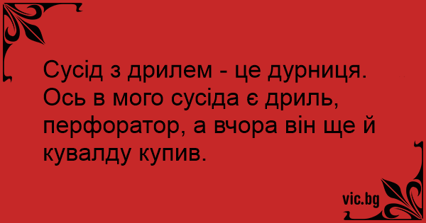 Сусід з дрилем - це дурниця. Ось в мого сусіда є дриль, перфоратор, а вчора він ще й кувалду купив.