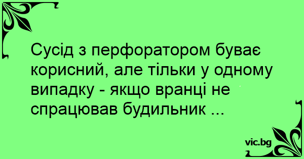 Сусід з перфоратором буває корисний, але тільки у одному випадку - якщо вранці не спрацював будильник ...