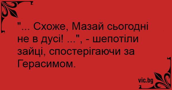 "... Схоже, Мазай сьогодні не в дусі! ...", - шепотіли зайці, спостерігаючи за Герасимом.