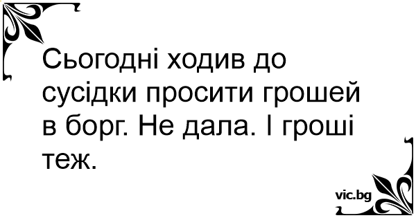 Сьогодні ходив до сусідки просити грошей в борг. Не дала. І гроші теж.
