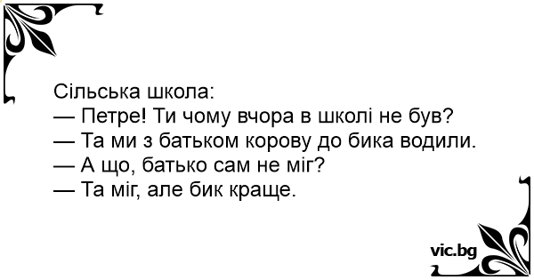 Домашно Hay que llevar a la vaca con el toro вовочка опоздал в школу. учительница интересуется причиной... Иванчо, защо вчера не беше на училище? В класната стая: Joãozinho chegou esbaforido e todo sujo, além de atrasado, na primeira aula. A professora se indignou: — Isso é hora? E sujo desse jeito? Isso não tem explicação! — Tem sim, professora: tive que levar a vaca lá de casa pro touro cobrir. — Mas o seu pai não pode fazer isso? — Poder, pode, mas acho... C'est un mec qui se promène à la campagne, lorsqu'il croise une toute petite fille de 6 ans qui conduit une vache au bout d'une corde. Le mec lui dit: - Ben ou tu vas comme ça avec ta vache? - Je... Padre recém chegado na paroquia do interior encontra na estrada uma menina de uns seis anos, puxando uma vaca. - Onde vai, minha menina? - Vou levar a vaca para cruzar com o touro do Seu Zé. O... Little Johnny walks a cow through the village square. The mayor sees him and asks, "Hey Johnny, where are you going with the cow?" "I'm taking her to the bulls so she would get impregnated,"... Ögretmen sinifa geç gelen ögrenciye: -neden geç geldin oglum der -bizim inegi damizlik bogaya götürdüm hocam. der çocuk -o isi baban yapamazmiy di? diye sorunca ögretmen, çocuk gülerek -belki... Jantje komt te laat op school en zegt: "Ik moest de stier wegbrengen om een koe te dekken." Onderwijzer, geirriteerd: "Kan je vader dat niet doen?" Jantje: "Zeker, maar de stier kan het beter." Certo dia na roça, o pai mandou seu filho levar o boi para a vila mais próxima para cruzá-lo com uma vaca. No meio do caminho, o menino encontra um padre. O padre, vendo o menininho tão pequeno... Трпе зошто не дојде вчера на школо? - Морав да ја носам кравата кај бикот. - Зарем татко ти не можеше тоа да го направи? - Па можеше, али сепак бикот подобро ќе ја заврши работата.