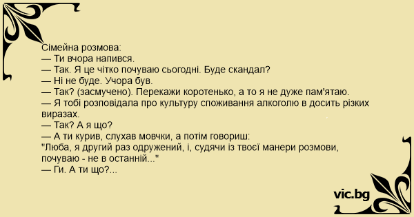— Я тобі розповідала про культуру споживання алкоголю в досить різких виразах.