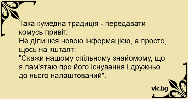 Така кумедна традиція - передавати комусь привіт.