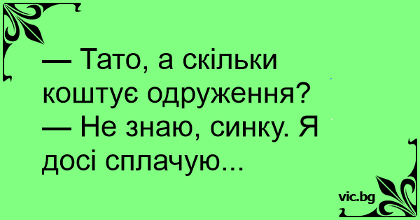 — Тато, а скільки коштує одруження?