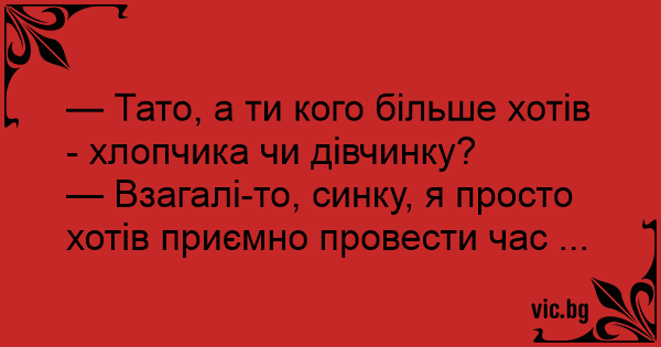Син, граючи з кубиками: Тату! А ти кого хотів, хлопчика чи дівчинку? Батько: Я хотів добре провести час...