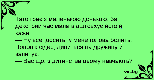 Тато грає з маленькою донькою. За декотрий час мала відштовхує його й каже: