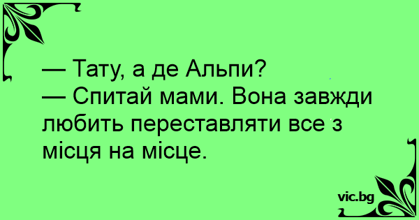 — Спитай мами. Вона завжди любить переставляти все з місця на місце.
